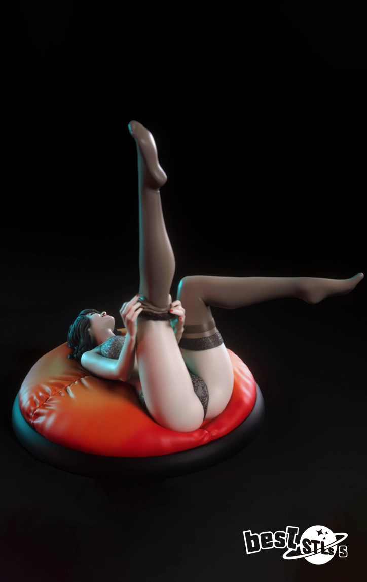 This sculpt emphasizes smooth geometry, balanced proportions, and refined detailing that print beautifully on resin printers and perform reliably on well-calibrated FDM setups. The clean surfaces make it perfect for hobbyists who enjoy painting pin-up figures, allowing for creative shading, retro color palettes, and high-contrast highlights.