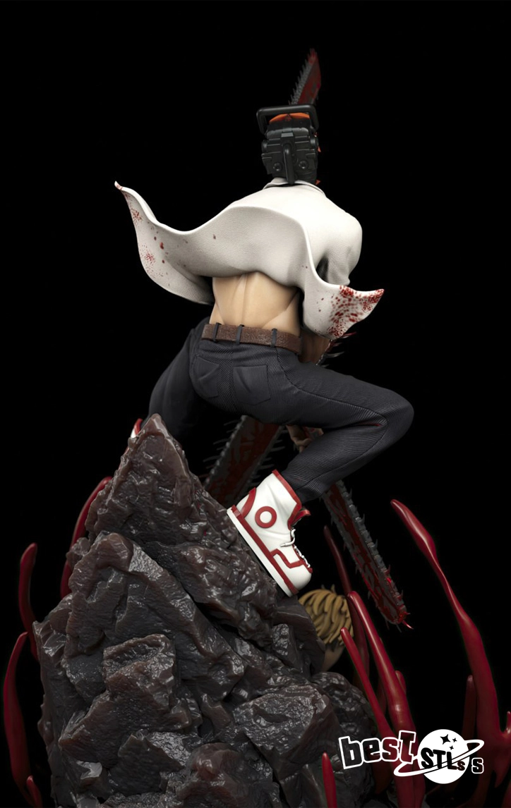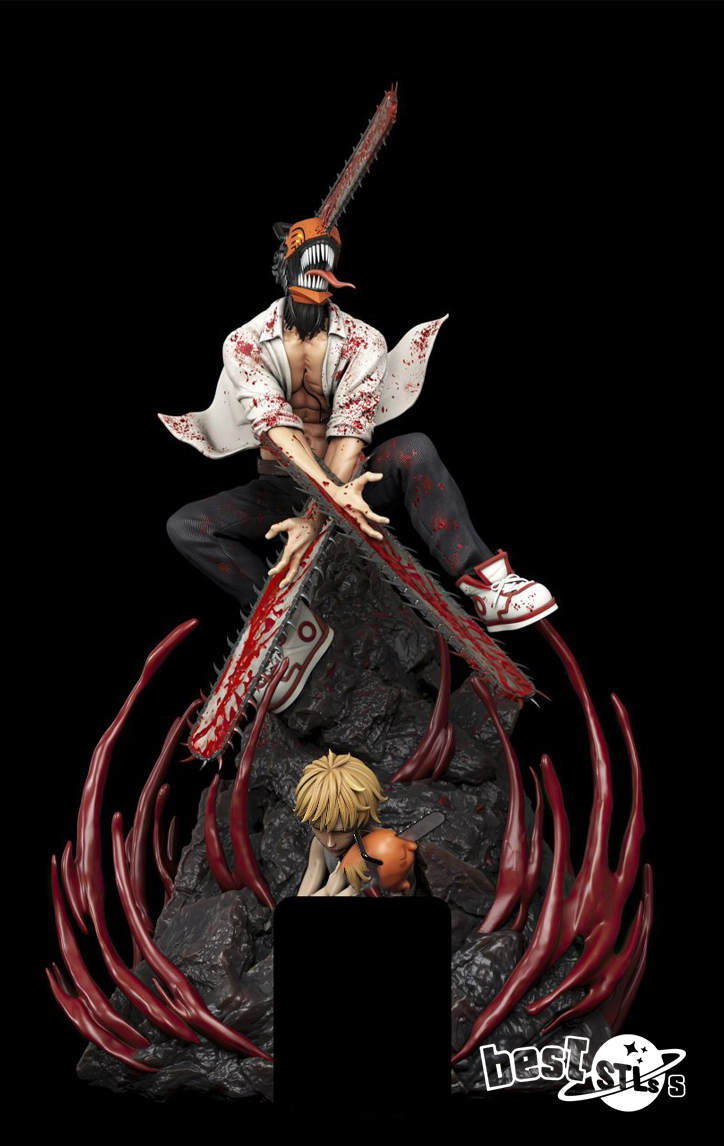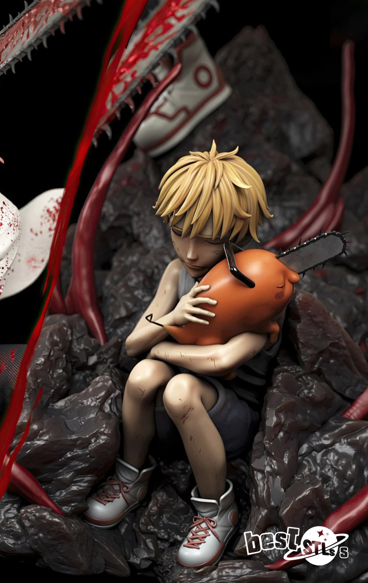 Detailed Denji and Pochita character sculpt