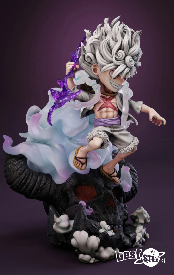 • Chibi Style Sculpt – Cute, stylized Gear 5 version of Monkey D. Luffy